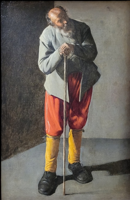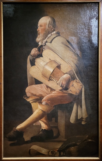 Georges De La Tour, Le Vielleur à la sacoche, Huile sur toile, Vers 1640 (les joueurs de vielle et les ménestriers sont, à l'époque, un sujet très apprécié des amateurs)