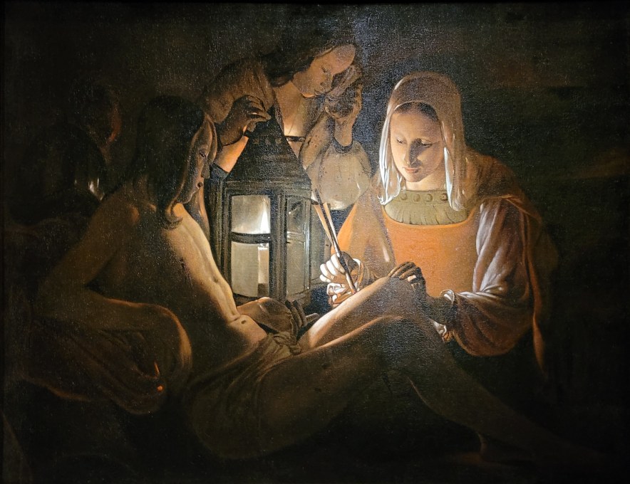 D'après Georges De La Tour, Saint Sébastien soigné par Irène, Huile sur toile, Vers 1640-1649 (d'après les sources, Louis XIII plaça l'original (perdu) dans sa chambre et en fit ôter toutes les autres toiles)