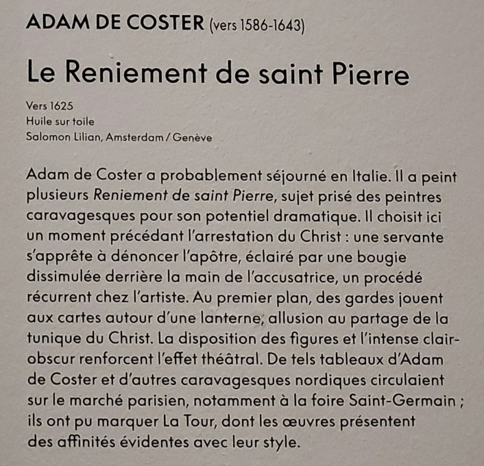 Le Tricheur à l'as de carreau, Huile sur toile, vers 1633-1638 ****************************************************** D'autres artistes spécialistes du clair-obscur sont présentés dans la même exposition...