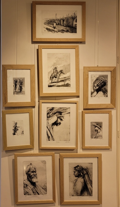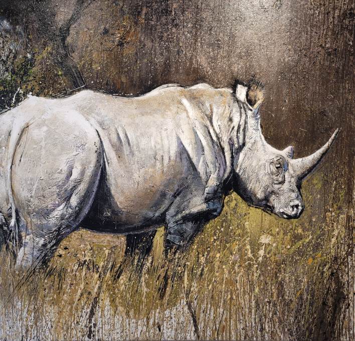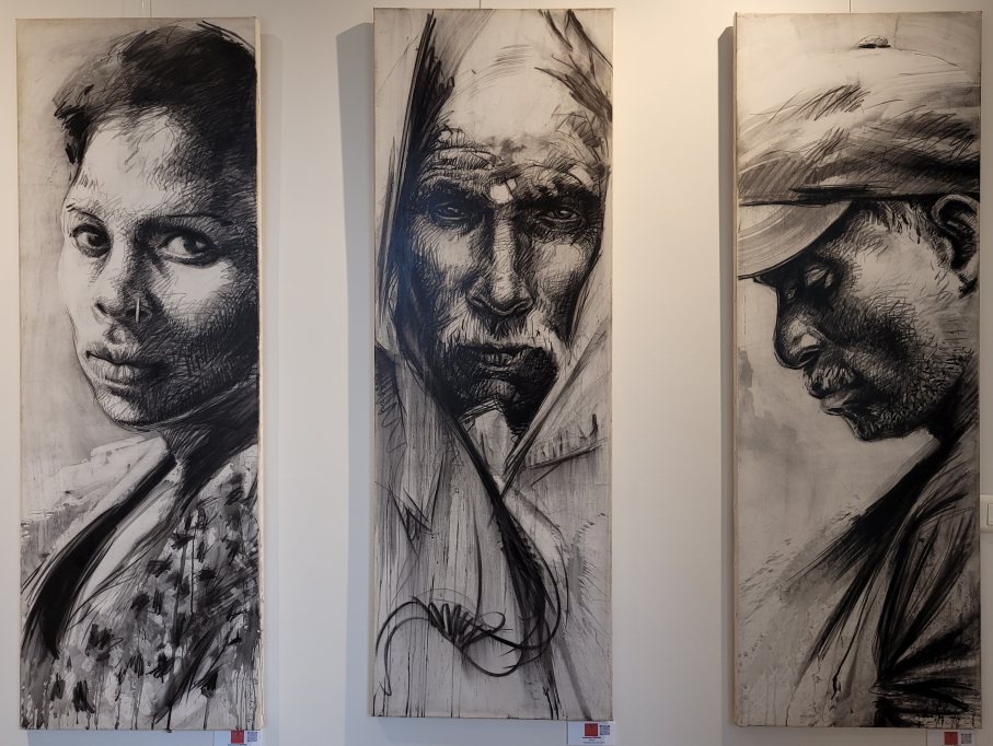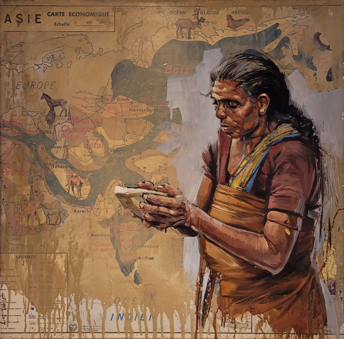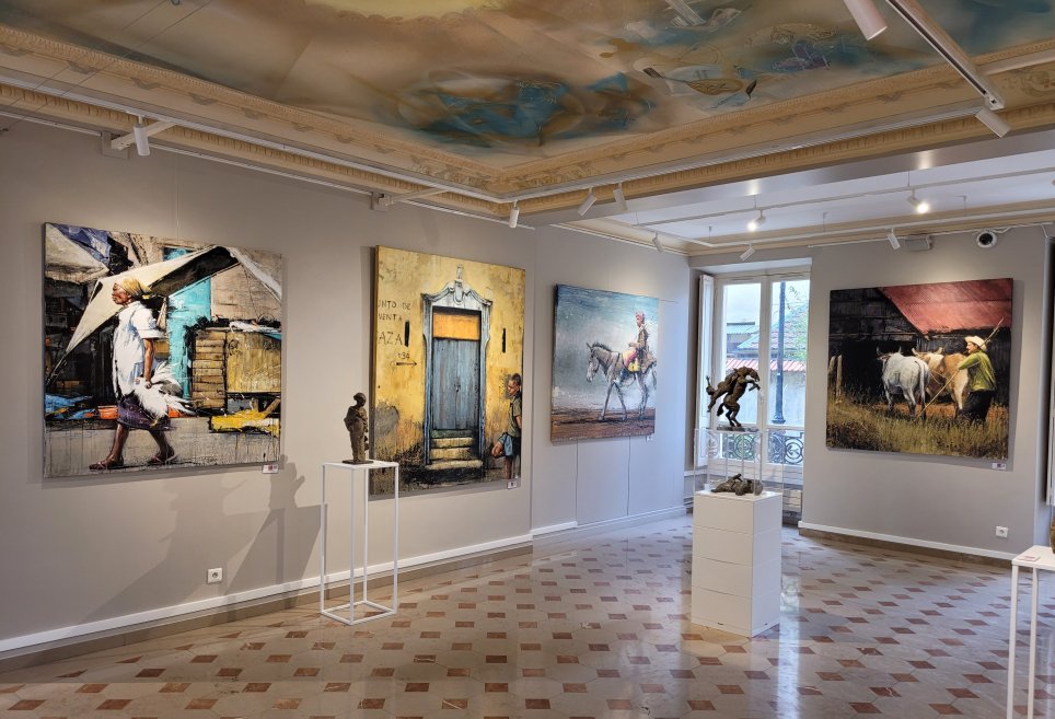 Mystique, Sculpture en bronze, 34*14*13, et Le Mythe, Sculpture en bronze, 64*34*24 Instinct, Sculpture en bronze, 40*20*12 Xaedan femme san, Acrylique sur cuivre, 40*40 Tambili, Huile et acrylique sur toile, 80*80 Downtown, Aquarelle, 51*36 Kalahari, Aquarelle, 51*36 Asha, Dévot et Pêcheur, Technique mixte, 150*50 Matin aux salines, Huile sur bois, 38*46 Rose, Huile sur bois, 46*38 Barber, Huile sur cuivre, 40*40 Gardienne des traditions, Sculpture en bronze, 43*20*20 Naya, Huile et acrylique sur toile, 100*100 Pick up man, Huile et acrylique sur toile, 120*120 Pablo, Huile et acrylique sur toile, 100*80 Kifaru, Huile et acrylique sur toile, 150*150