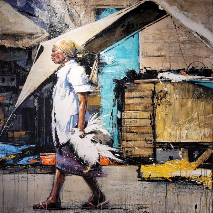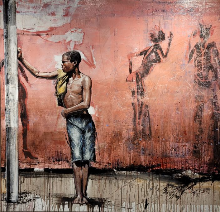 Emmanuel MICHEL, Prince du Lesotho, Huile et acrylique sur toile, 140*160 Emmanuel MICHEL, Riposte, Sculpture en bronze, 86*68 Emmanuel MICHEL, Butha Buthe (Afrique australe), Acrylique sur toile, 130*130 Emmanuel MICHEL, Punto de venta, Huile et acrylique sur toile, 173*150 Josi, Huile et acrylique sur toile, 150*150 Femme Tswana, Huile et acrylique sur toile, 162*97