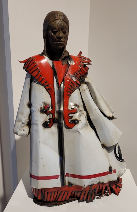 L'Indienne, Sculpture en bronze et fer, 51*39*26 et Sherpani, Sculpture en bronze et fer Barbichette, Chapeau de paille et Coiffe, Huile sur cuivre, 30*24