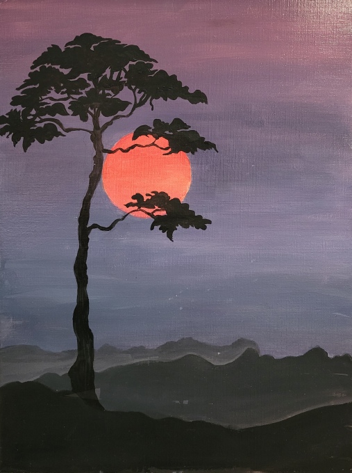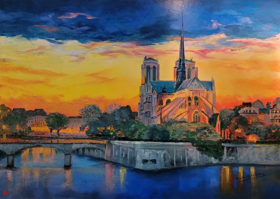 Nicole BISSIERES, Coucher de soleil sur Paris, Acrylique
