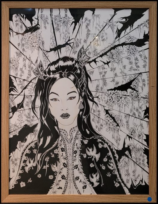 Nadia JASPART, Princesse de nuit et de fleurs, Dessin au feutre noir