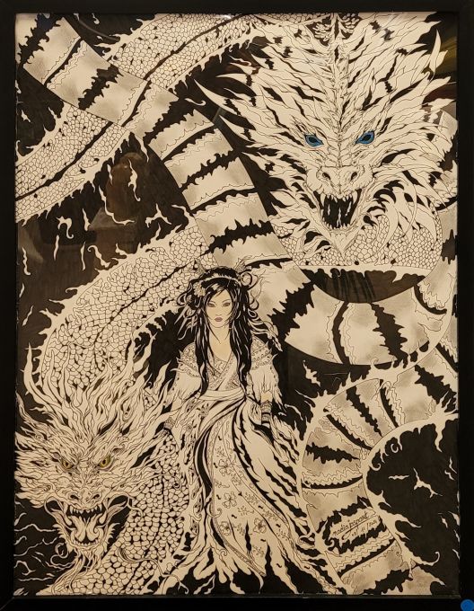 Nadia JASPART, Ruy na onna (femme dragon), Dessin au feutre noir