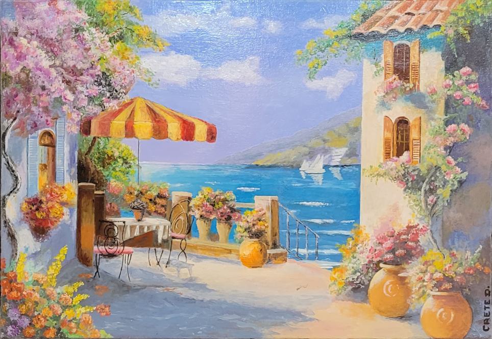 Daniel CRETE, Courette en bord de mer, Huile sur toile