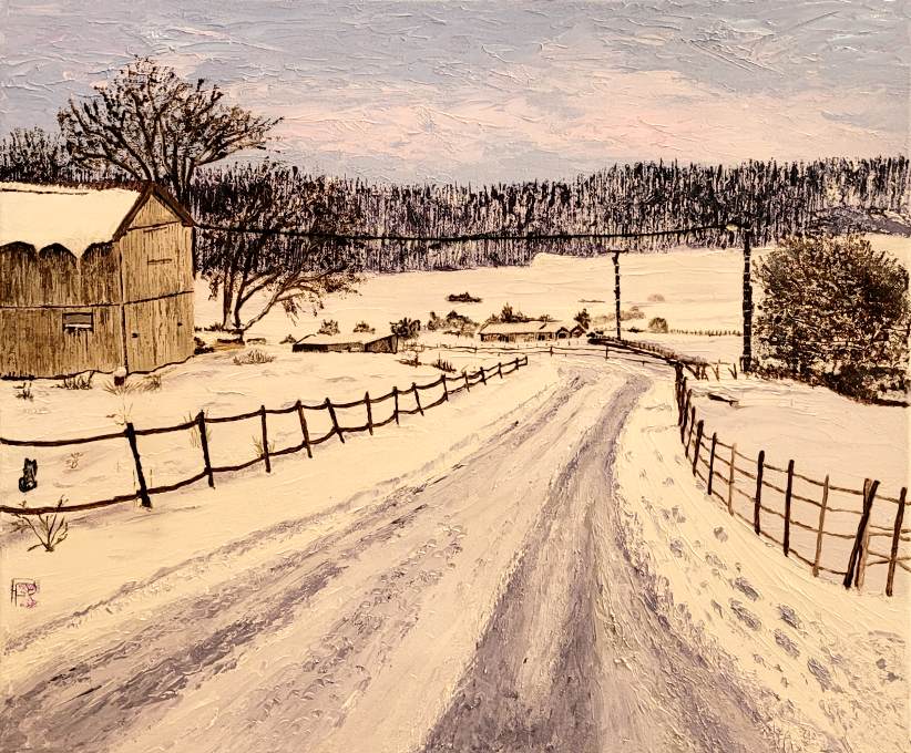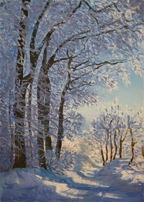 Keluina FOWDAR, Paysage de neige, Huile sur toile