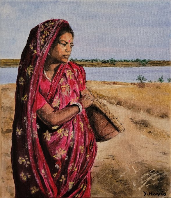 Yvette HANRIO, Au bord du Gange, Huile