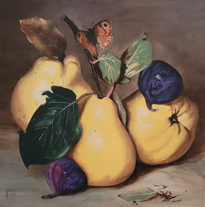 Patricia PETIPRETRE, Coing-coing et figues, Huile sur toile