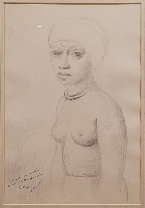 Moïse KISLING, Portrait d'Aïcha Goblet, Crayon et lavis sur papier, 1929