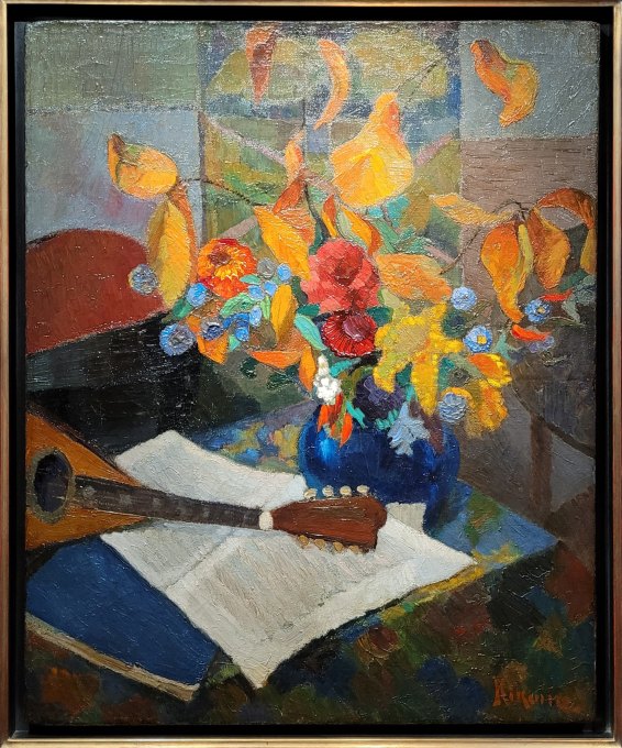Michel KIKOÏNE, Fleurs et nature morte à la mandoline, Huile sur toile, Vers 1910-1915