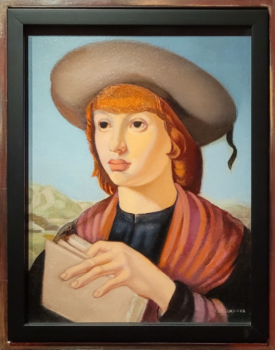 Tamara de LEMPICKA, Jeune homme au livre, Huile sur toile marouflée sur carton, 1954