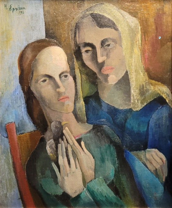 Henri EPSTEIN, Deux femmes à l'oiseau, Huile sur toile, 1916