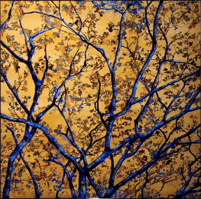 David MERCADO, La belleza y el misterio, Acrylique sur toile et feuille d'or, 120*120