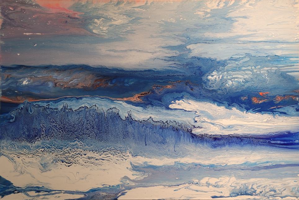 Sandrine BERTHON, Triptyque "Contre-courant", Peinture numérique, 3 panneaux 50*100