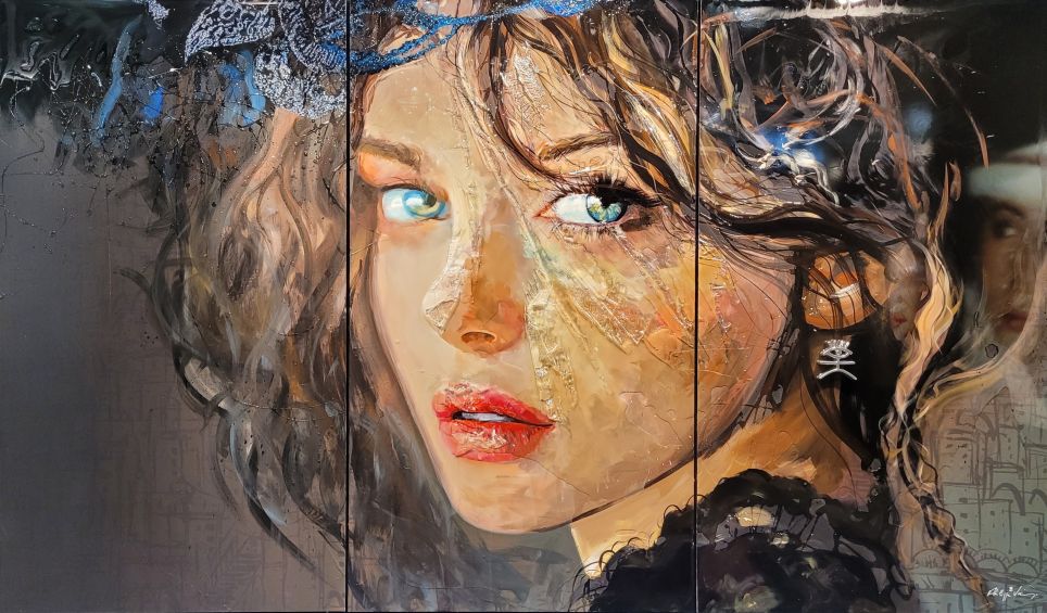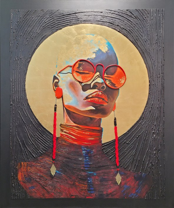 David MERCADO, Cuello largo, Acrylique sur toile et feuille d'or, 170*140
