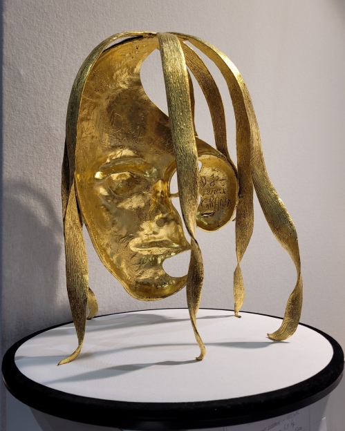 Véronique VIGNERON, L'Enfant intérieur, Face et dos sur plateau tournant, Bronze doré à la feuille d'or 24 carats, 48*28*25
