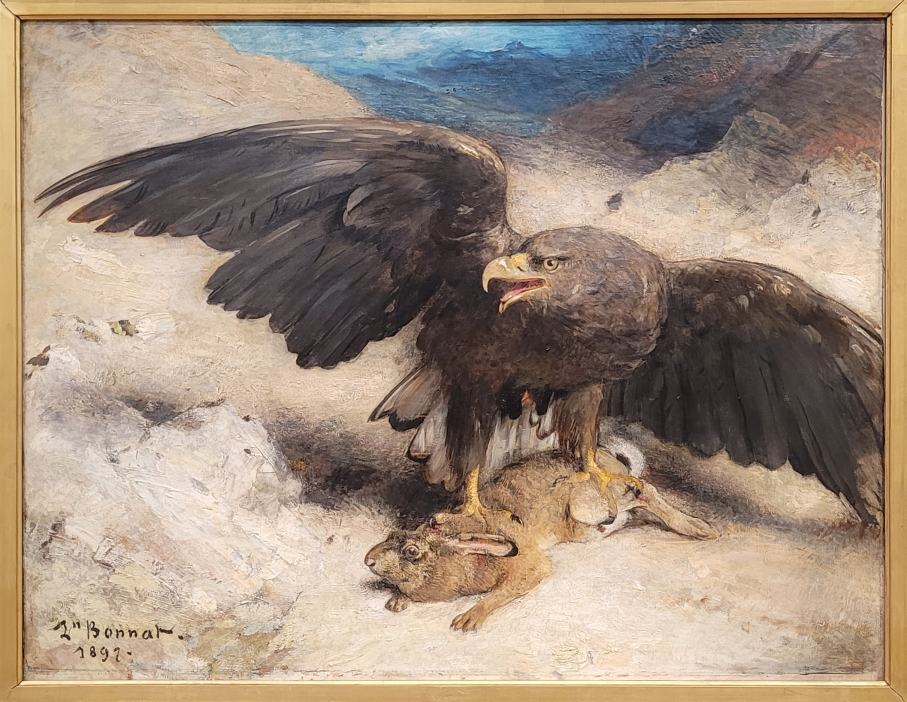 Léon BONNAT, Aigle liant un lièvre, 1897, Huile sur toile