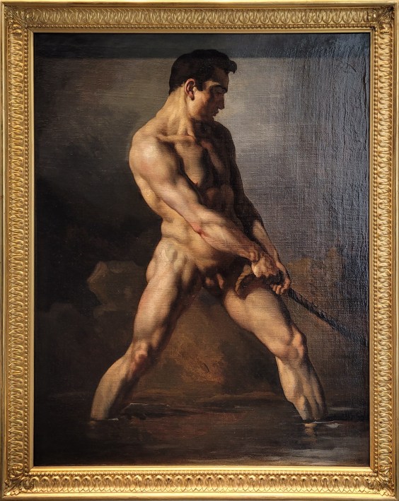 Théodore GÉRICAULT, Académie d'homme tirant sur une corde, Vers 1812-1817, Huile sur toile