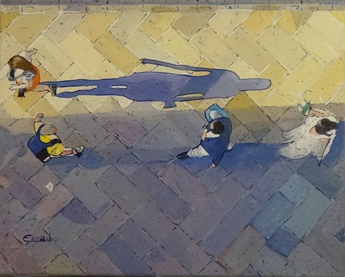 Mardi 23 février 2021 : Einado, Dans ma série "Urban" une toile de mes "Street View" la 1. Vinylique et encre de chine sur toile, 41*33