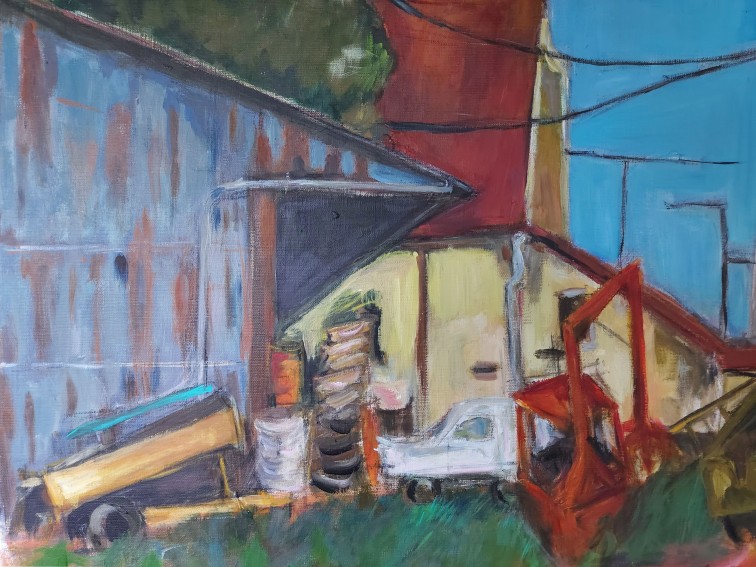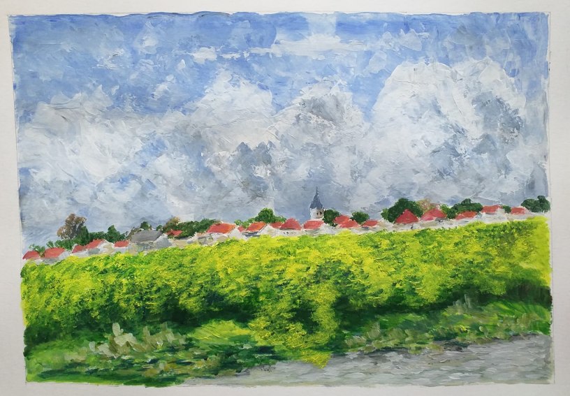 Samedi 10 avril 2021 : Josette Mongeny Lemaire, "Petite vue de ce matin", Acrylique sur papier canson A3 (8 avril 2021)