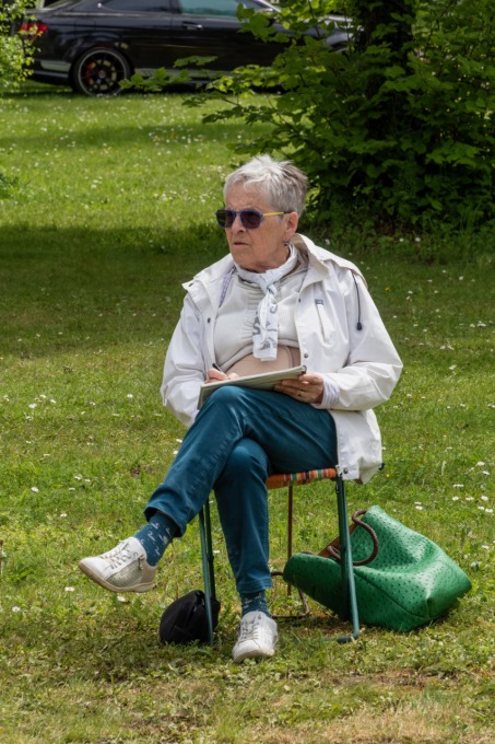 Corynne Sculfort, toujours aussi dynamique, a entraîné plusieurs artistes de l'Amicale dans cette aventure de croquis au milieu des fleurs, des voitures et des autobus Merci à Pierre Sacovy pour son petit reportage