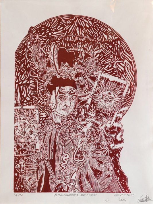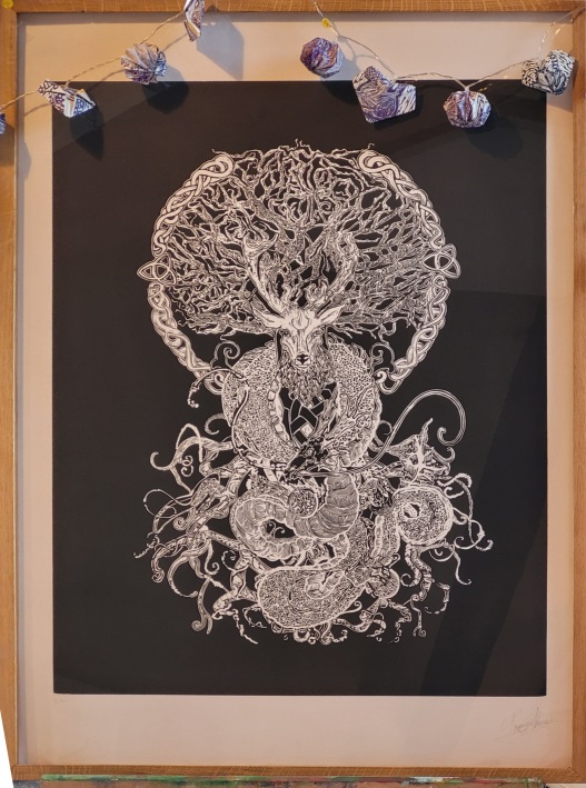 Aurore Nardot,Yggdrasil, l'arbre des mondes, Linogravure, 100*80