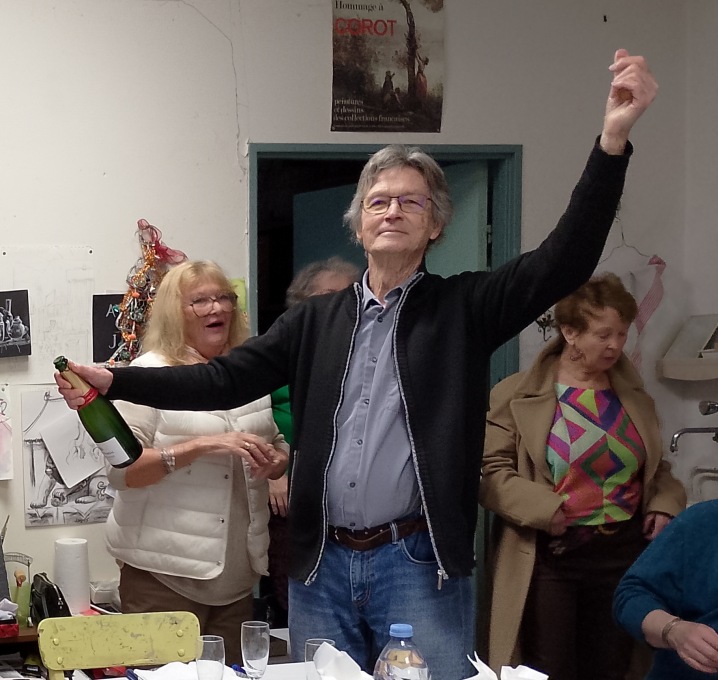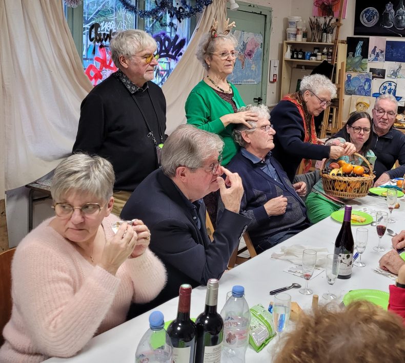 Les 24 convives sont attablés, Gérald Desplancques ayant pris le relais pour les bulles