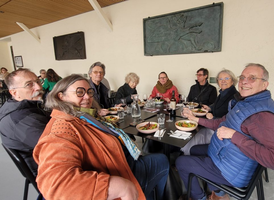A 13 heures, les visiteurs se retrouvent au Rhodia, le restaurant du musée Bourdelle : Catherine Masson, Pierre Sacovy, Daniel Vittecoq, Dominique Fourgeot, Anne-Marie Rosiñol, Hervé Jeandot, Corynne Sculfort et Jean-Luc Charpiot ... Retour en haut de la page... Reportage d'avril 2022 sur le Musée Bourdelle (<== Cliquez)