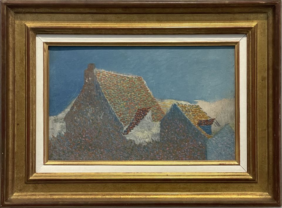 Léo GAUSSON (Lagny 1860-1944), Les toits pointillés, Huile sur toile, 1886-1888