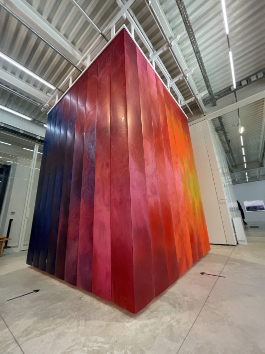Laurence AËGARTER, Soleils couchants sur la Seine à Lavacourt, Tapisserie Jacquard en fils mixtes dont mohair et lurex, 2022