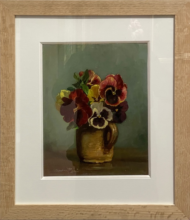 André PLÉE, Le Vase de pensées, Huile sur carton