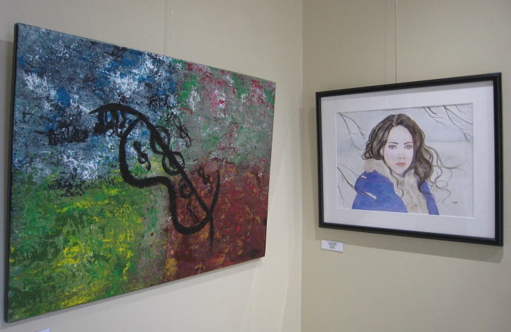 Jessy Maillard : Sans titre, 50 x 70, Acrylique Francine Hellier : Coeur de l'hiver, 31 x 41, Aquarelle