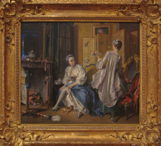 Frans van Mieiris I, Portrait d'une dame avec un chien dans son giron, 1672