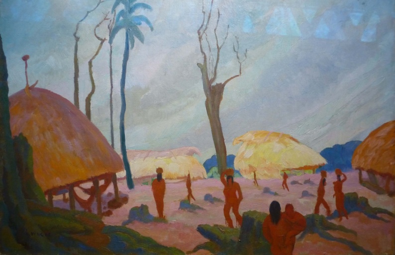 Gaston Vincke, Village Wayana, Guyane, ancien titre Village indien roucouyenne, 1932, Huile sur toile
