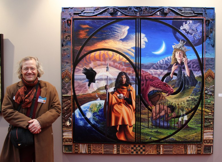 De chaque côté, Albert Avetisyan, Médaille d'or 2018, "Suis-moi sans t'arrêter" et "Femme avec scorpion", au milieu, Ine, Voyage abstractif
