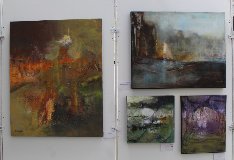 Marianne Limplaire, Désir d'éclaircie, Gouffre céleste, Brumeuse ascension et Lueur, Huile sur toile