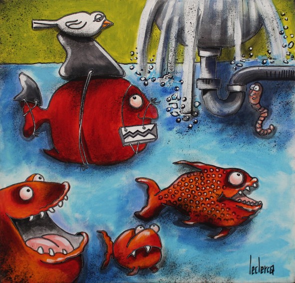 Leclercq, Quand la pêche est ouverte, Acrylique sur toile