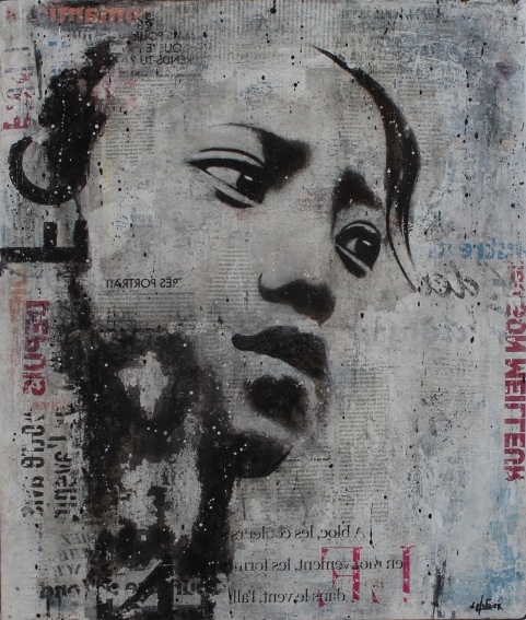 Fady Ferhi, L'homme à genoux, Techniques mixtes sur toile