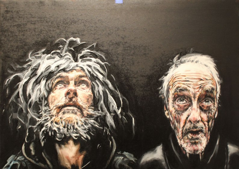 Serge Krewiss, Les bourgeois de Calais, Huile sur toile, 150 x 150