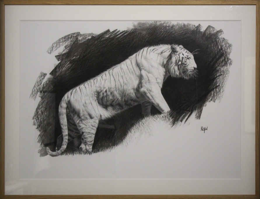 Christophe DROCHON, Etude de tigre blanc, Fusain sur papier, 75 x 110