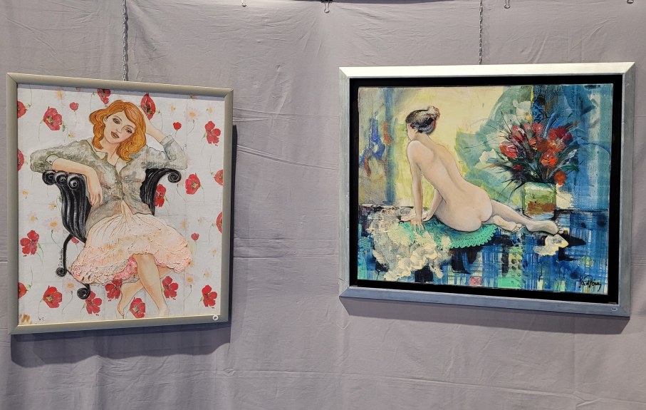 Pascale De SAINT-PERON, Coquelicots, Acrylique - Collage, et Nu de Dos, Huile sur toile
