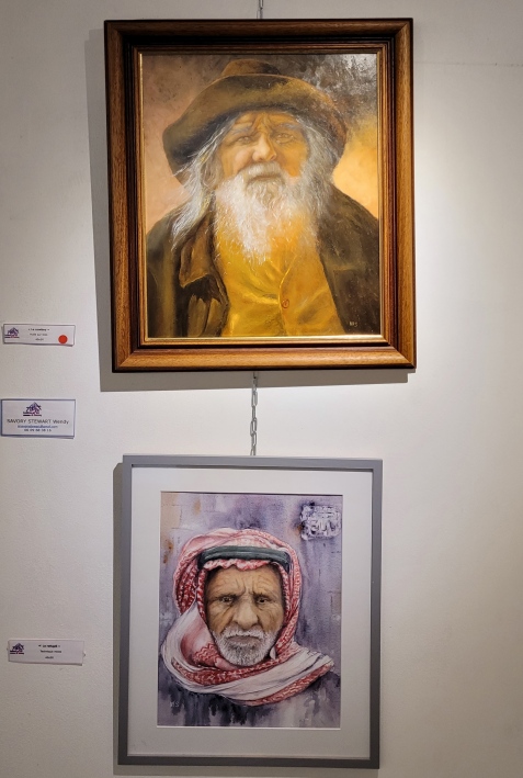 Wendy SAVORY STEWART, Le cowboy, Huile sur bois, 50*40 et Le réfugié, Technique mixte