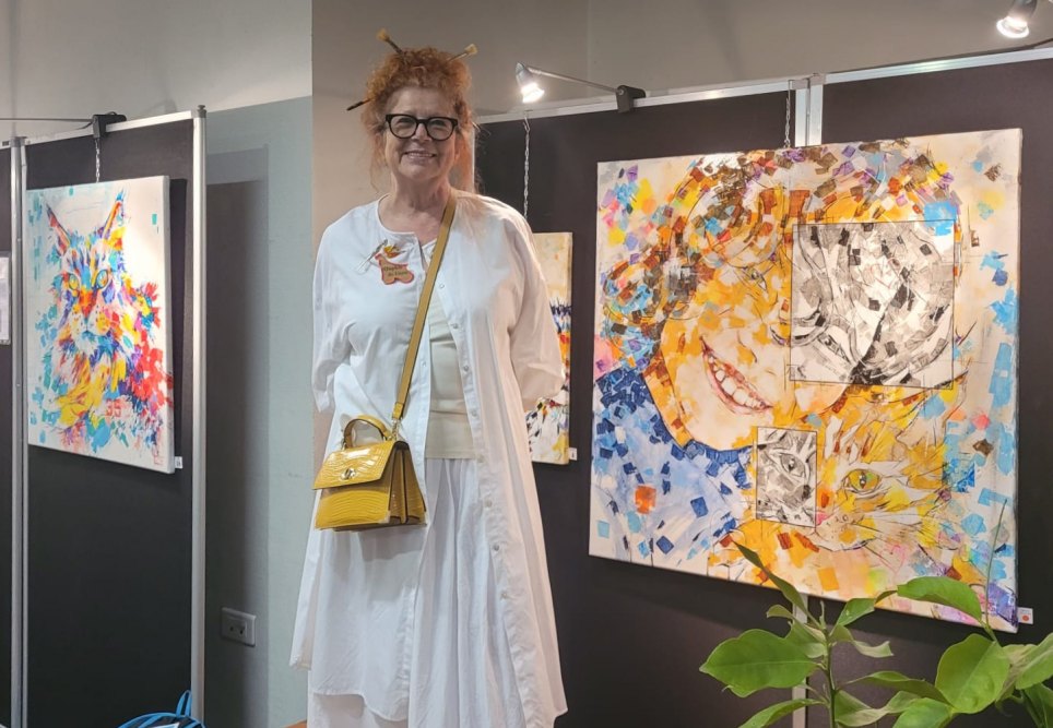 ORPHIE DU LIGOR, Invitée d'honneur Peinture devant ses œuvres (Photo Corynne Sculfort)
