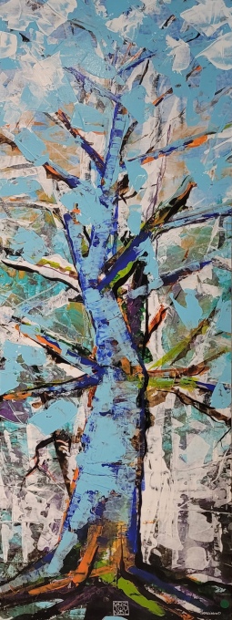 Yvette HANRIO, Le bouleau, Huile au couteau