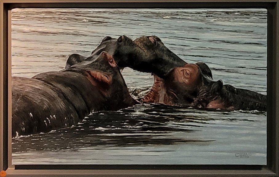 Gérard NICAUD, Les hippos, Peinture à l'huile