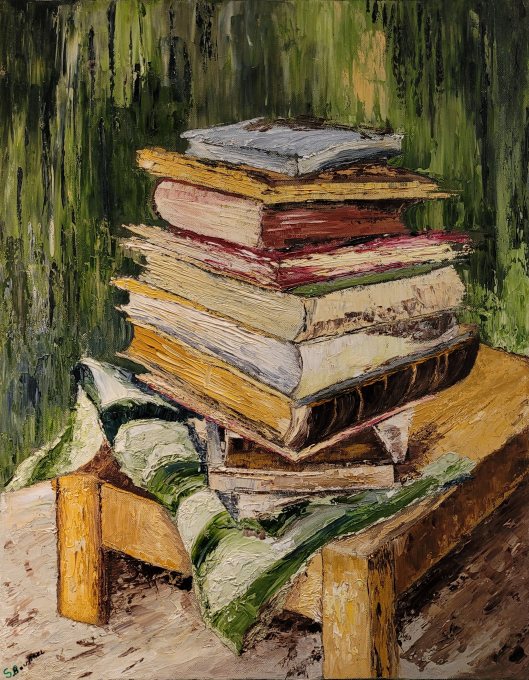 Simone BOURREL, Quelques livres, Huile sur toile