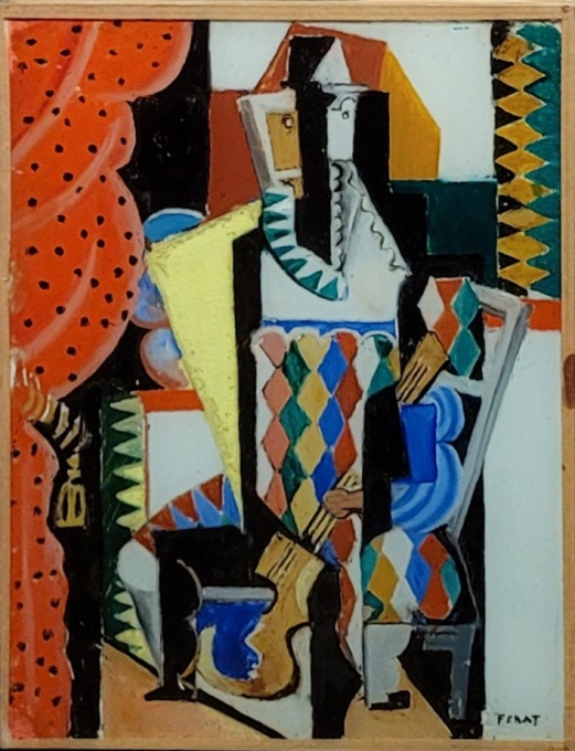 Serge FÉRAT, Arlequin à la guitare, Huile fixée sous verre, Vers 1913-1915