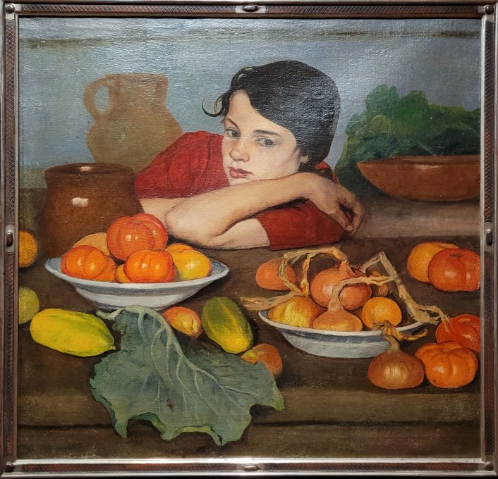 Georges ASCHER, Petite fille derrière une table, Huile sur toile, Vers 1925