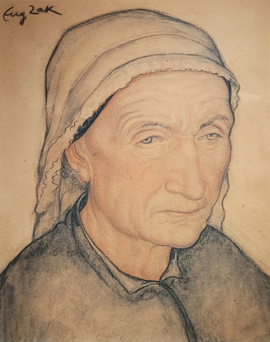 Eugène ZAK, Portrait de femme bretonne, Fusain et sanguine sur papier, Vers 1911